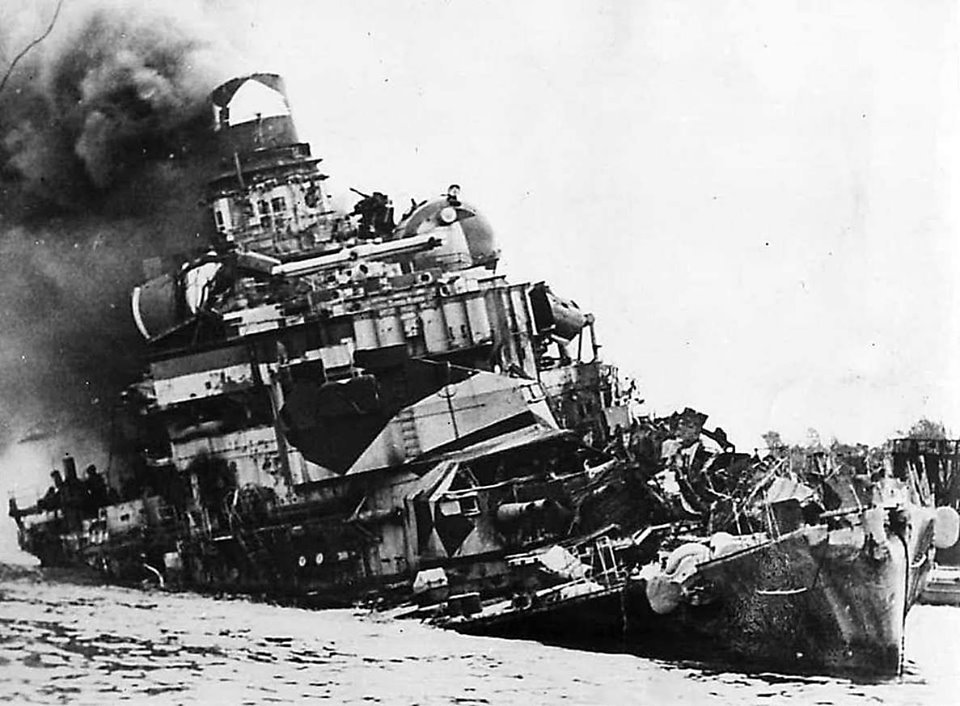 1) Vrak těžkého křižníku Admiral Hipper v roce 1945