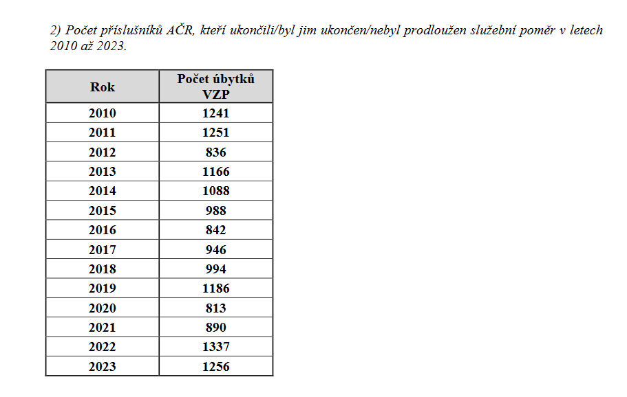 V odpovědi na 106tku zveřejnilo MO zajímavé tabulky o přírůstku/úbytku VZP a úspěšnosti v přijímacím řízení mezi lety 2010-2023.