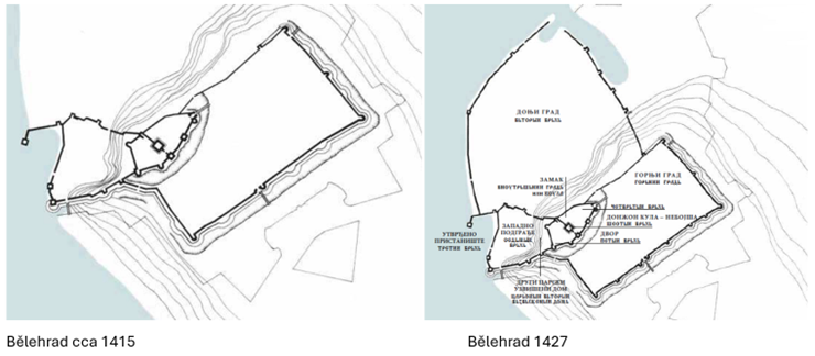 Někde tak byla v Bělehradu /inspirace pevností Yoros?, Golubac, Kavala, byzantským opevněním, vlivem/, i pozdější dodělávky, než se dříve myslelo.