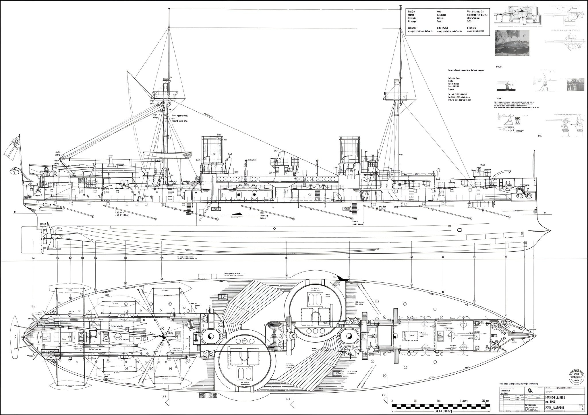 To první mi připomíná nějaký starý britský pancéřový či velký chráněný křižník z doby před WWII (ty mívaly takhle čtyři komíny).