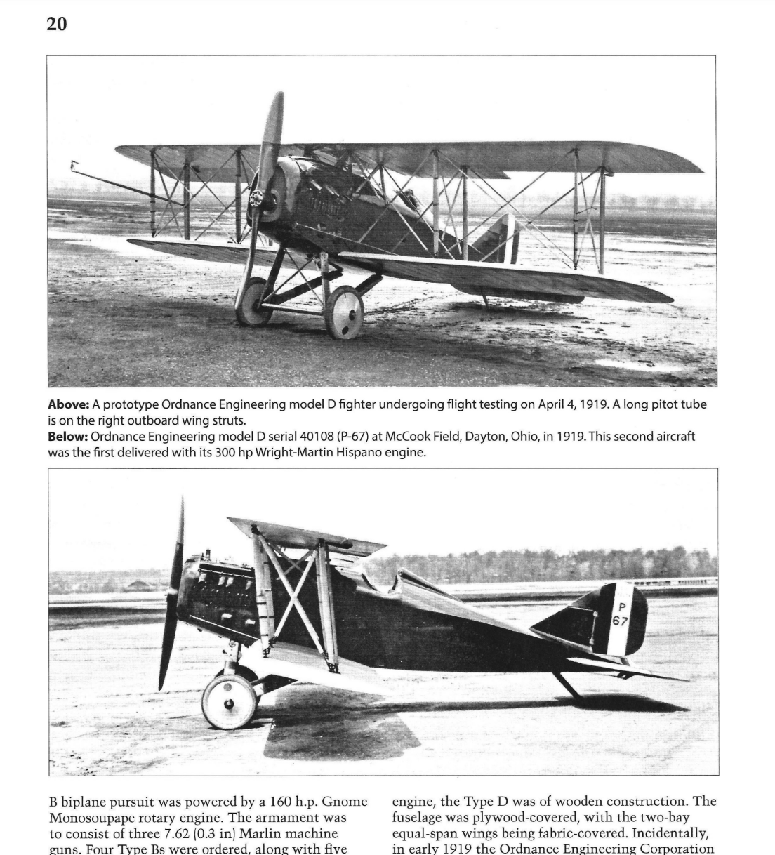 První doma postavený americký stíhač Orenco Type D (1918-1919), který vyvinula firma Ordnance.
