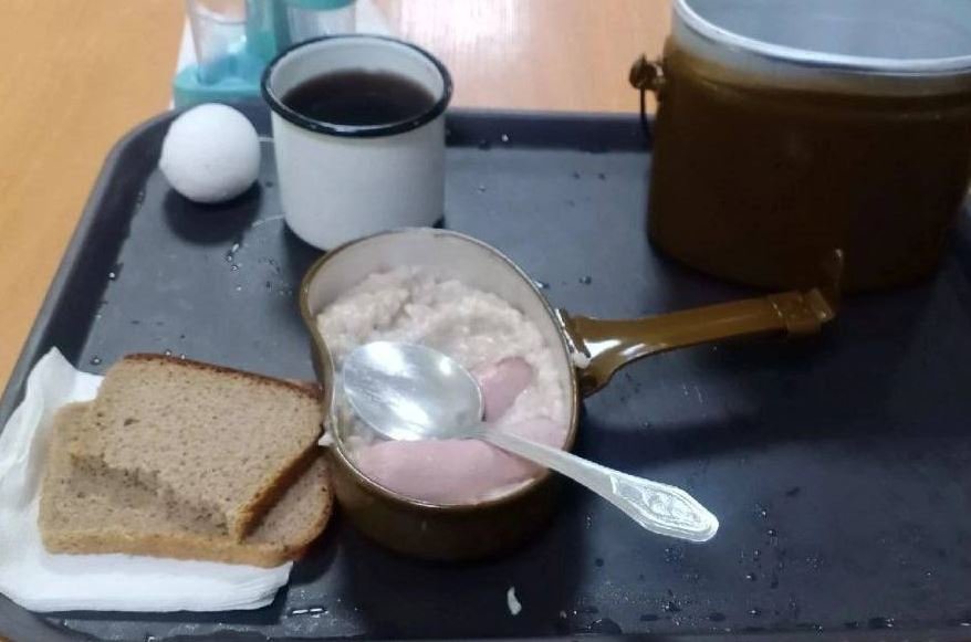 Mobilizovaný Rus zveřejnil fotku jídla, které mu bylo dáno. Pořádná nálož jakési pohankové kaše a krásně vybledlý lančmít nebo co je to za průmyslové cosi. Chleban to nejspíš moc nezachrání. Na závěr hrneček podivné černé tekutiny (nějaká cikorková káva či čaj) s pěknou koulí z cukru - pro oslazení trudného života. Možná to cucají, nevím. Původně jsem si myslel že je to uvařené vajíčko, ale není.