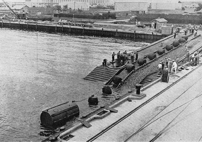 USS Los Angeles (ZR-3) vyvázaná k USS Patoka (AO-9) někde u Panamy, během cvičení Fleet Problem XII, únor 1931: