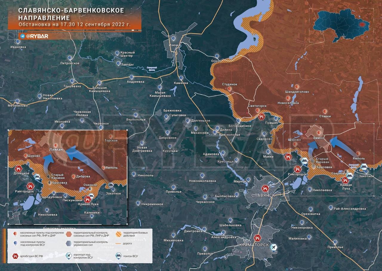 ▪️Ruské síly při protiofenzivě u Limanu prolomily obranný prostor ukrajinských ozbrojených sil jihovýchodně od osady. Ukrajinské formace se stáhly do oblasti Severského Donce.
