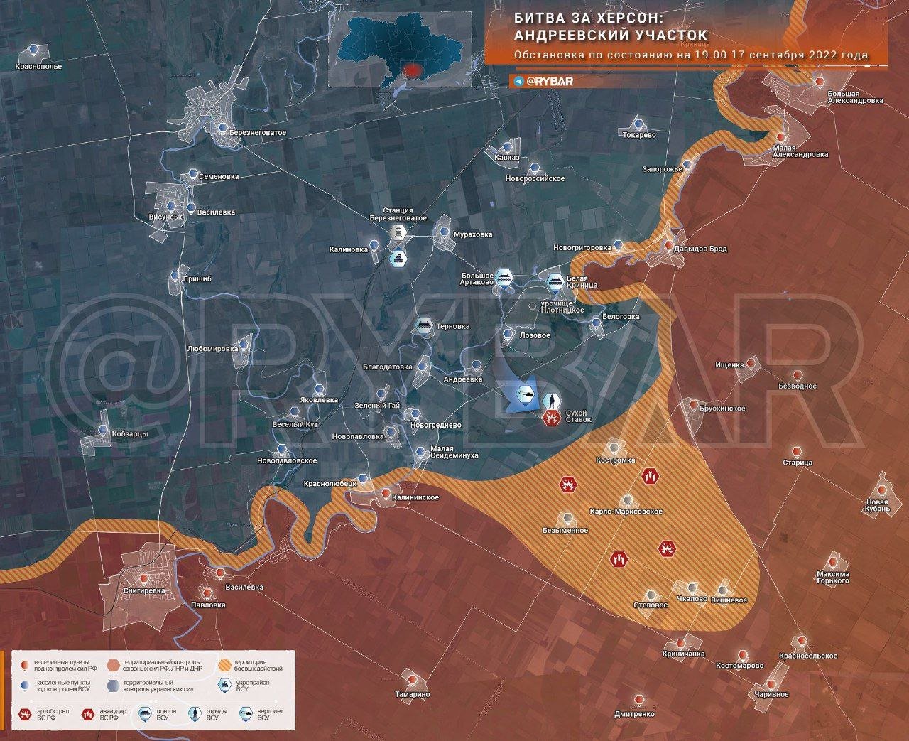 Jednotky 808. pluku AFU rozmístily jižně od Berezněvatoje pět pontonů, aby obnovily komunikaci s levým břehem řeky Ingulets pomocí vozidel KrAZ-255, ale jsou pod neustálou palbou ruských jednotek.