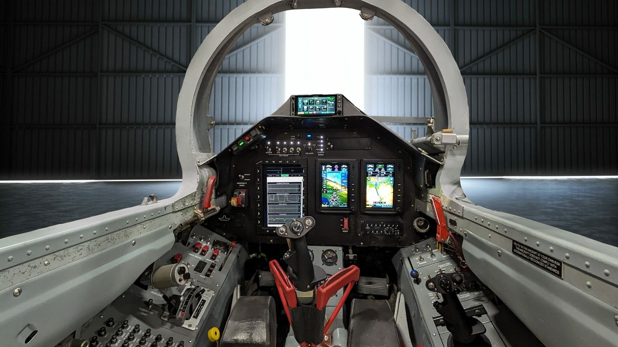 Zadní kokpit instruktora je již vybaven několika displeji, systém pro modifikaci letových vlastností. Na rozdíl od prostoru žáka je vybaven i středovým knyplem.