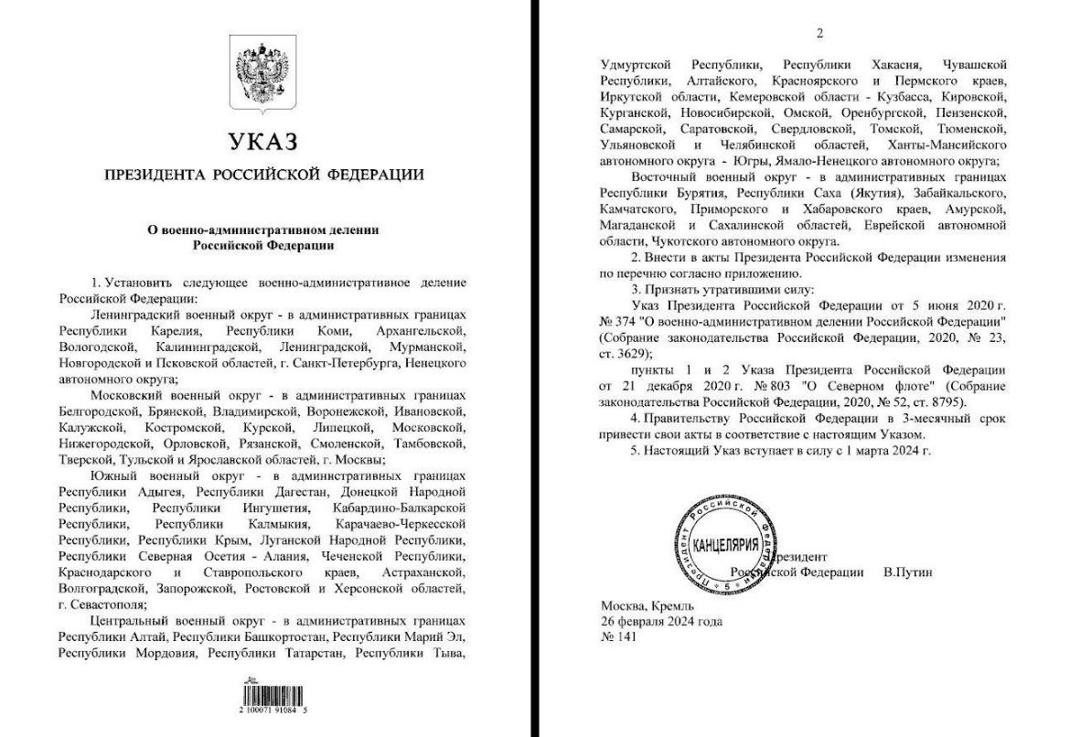 Putin dekretem obnovil Moskevský a Leningradský vojenský okruh. Zároveň okupovaná ukrajinská území začlenil do Jižního vojenského okruhu...