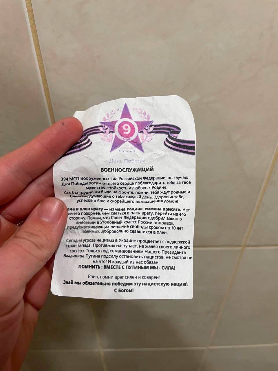Jsou to takové letáky, které se dávají hloupým vojákům ruské armády, aby je motivovali, aby neustupovali. Jděte vpřed, nebo půjdete na 10 let do vězení. Je lepší se zabít, než se vzdát nepříteli. A jen díky bohem vyvolenému Vladimíru Putinovi můžete vyhrát. Klekněte si před něj a líbejte mu nohy. Tohle už není armáda, to je kult, jaký jsme dlouho neviděli. Kdo by si pomyslel, že takový středověký přístup bude v naší době možný.