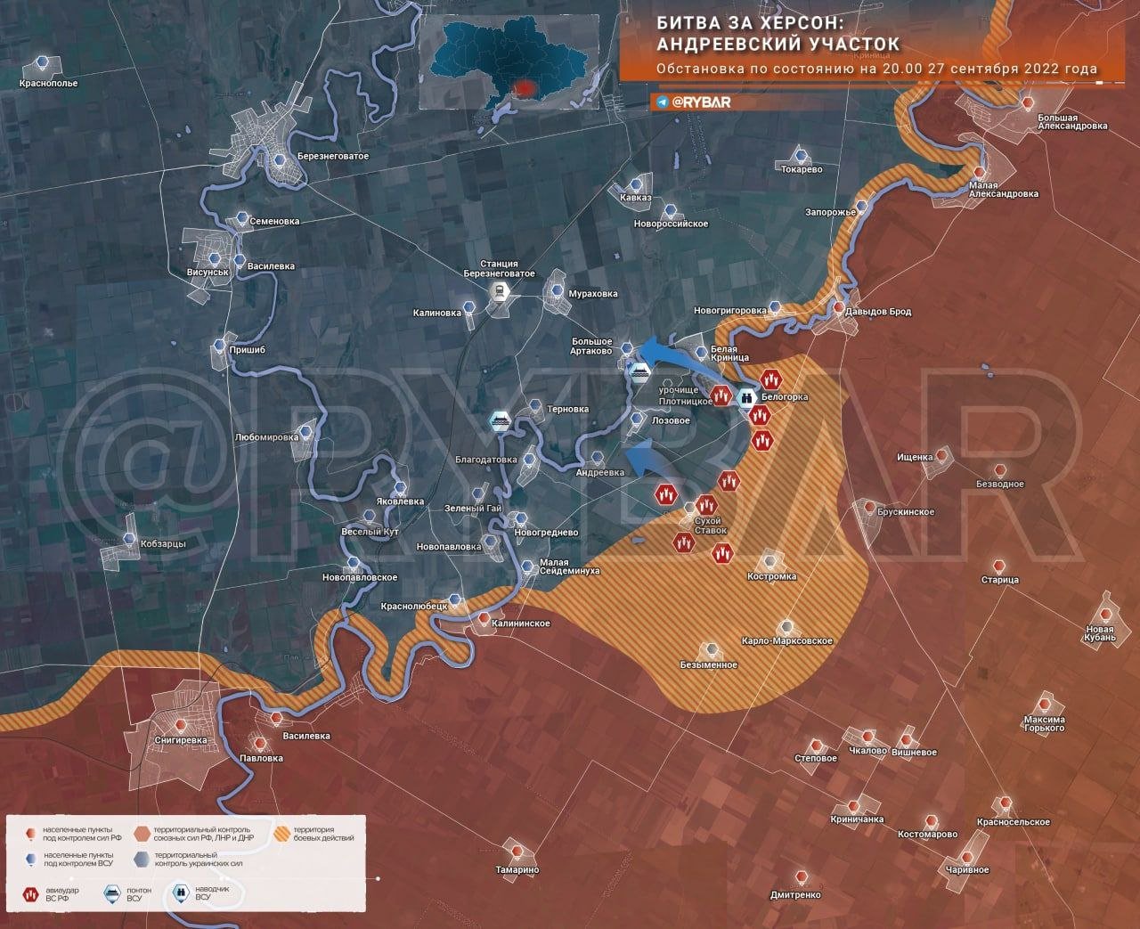 Bitva o Cherson: situace v Andreevském sektoru od 20.00 hodin dne 27. září 2022