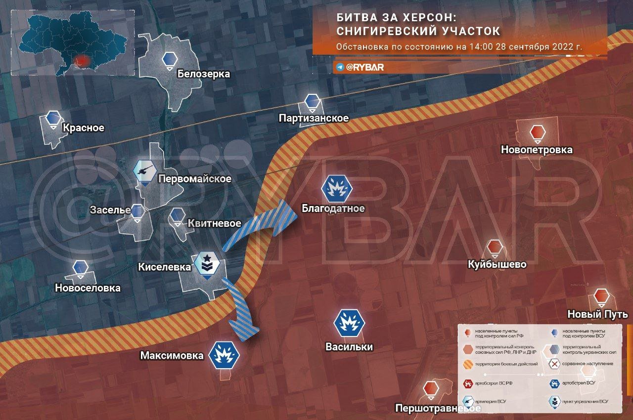Bitva o Cherson: situace v úseku Snigirevsky od 14.00 hodin dne 28. září 2022