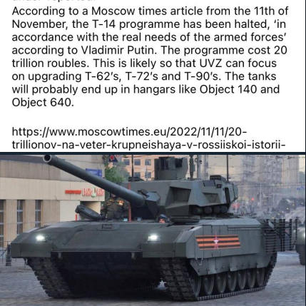 Jestli nakonec opravdu T-14 resp. celý program "Armata" skončí "v muzeu", tak se vyplní můj skepticismus, který jsem zde na začátku debaty před léty vyjádřil a naplní tak osud velkého množství podobně dopadnuvších tanků.