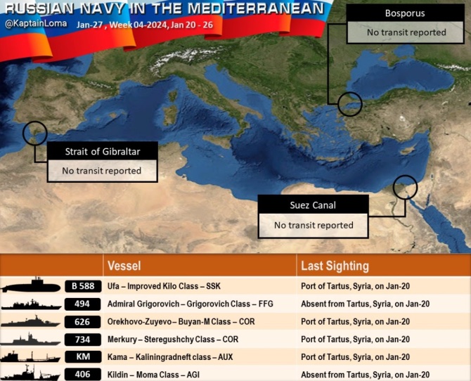 Složení ruské středomořské eskadry k 27.01.2024: