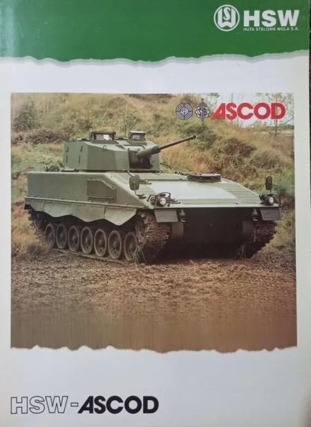 Reklama nabízející výrobu bojového vozidla Ascod v závodě Huta Stalowa Wola kolem roku 2000.
