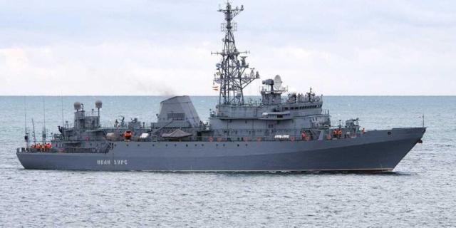 Tak krom oněch dvou Ropuch mohli rusové při včerejším útoku přijít i o zpravodajskou loď Ivan Churs. Ta vstoupila do služby 16. května 2017, spadá do třídy Jurij Ivanov (Projekt 18280), jejímž hlavním úkolem je provádění radiotechnického průzkumu a odposlechu komunikace. Plavidla nesou navigační radar MR-231-3 a jsou vybavena zpravodajským komplexem P-709. Výzbroj tvoří dva kulomety MTPU ráže 14,5 mm a šest přenosných protiletadlových raketových kompletů 9K38 Igla se zásobou 32 střel. Pohonný systém tvoří dva diesely 5DRA, každý o výkonu 2720 hp, roztáčející dva lodní šrouby s pevnými lopatkami. Nejvyšší rychlost dosahuje 16 uzlů. Dosah je 8 000 námořních mil.