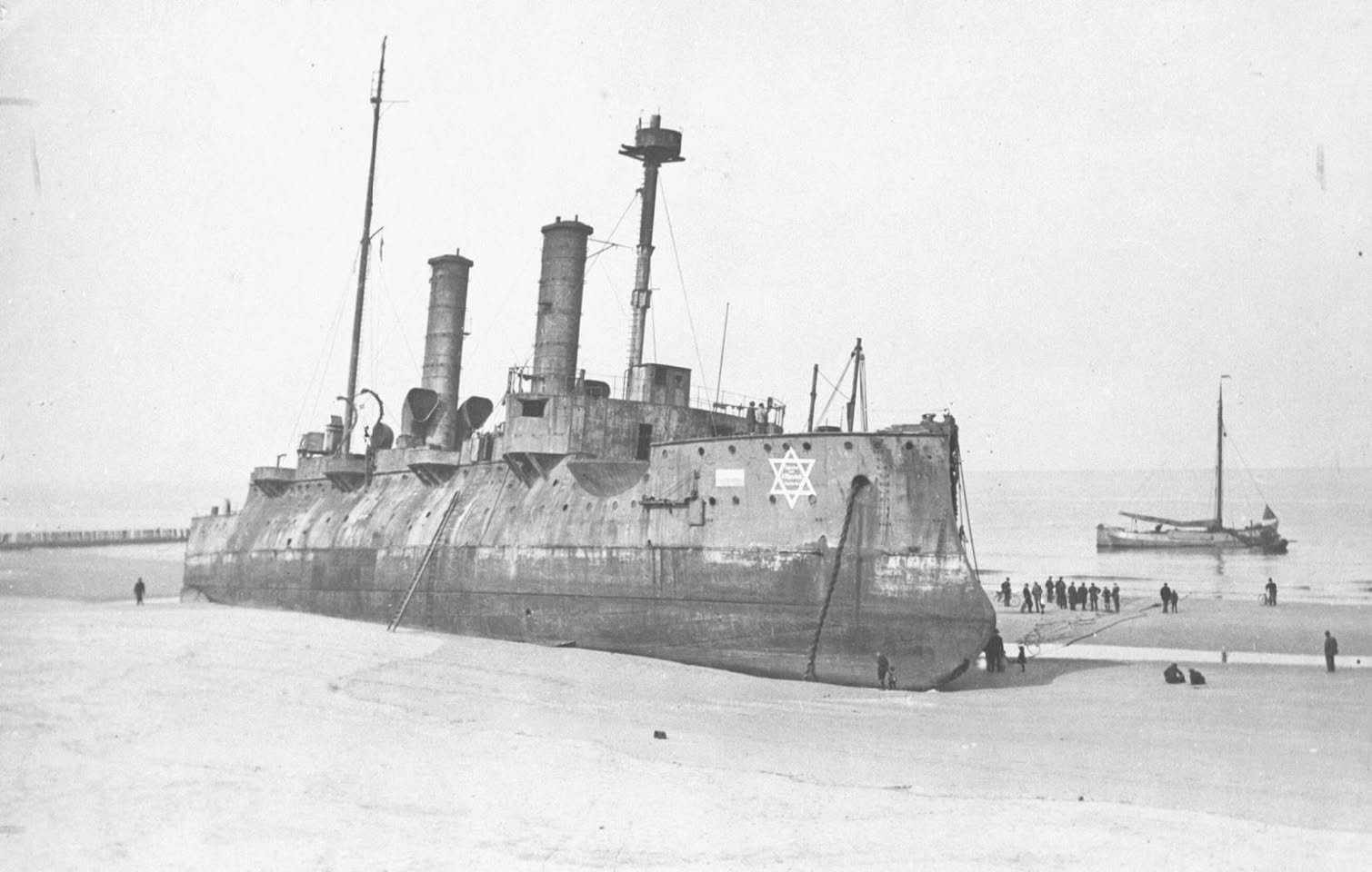 Myslím si, že ten design lodi se dá poznat a podle toho určit o jakou loď a třídu se jedná, nicméně mě zaujala ty velká židovská hvězda na přídi a že loď je zbavená veškeré výzbroje. Nevzpomínám si, že bych tuto fotku někdy viděl.