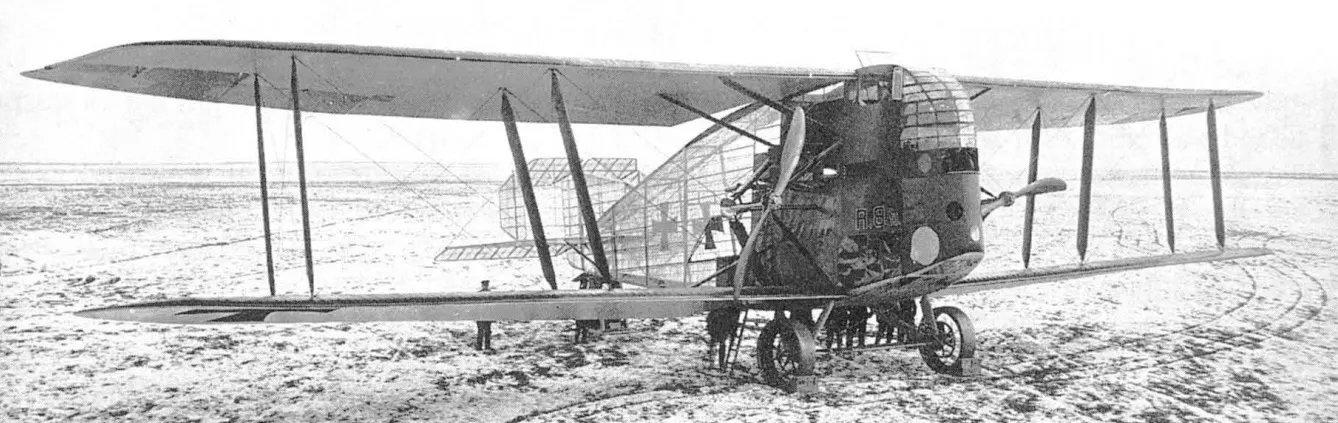 A tady jeho mladší bratříček R.II. Ještě větší drobeček. Jedna vrtule a 12 tun vzletovka, 42 metrů rozpětí, a v pupku čtyři Mercedesy D.IVa po 260 koních kus. Sedmimetrová vrtule točila 545 ot. za minutu. Kupodivu se s ním ale létalo snadno.