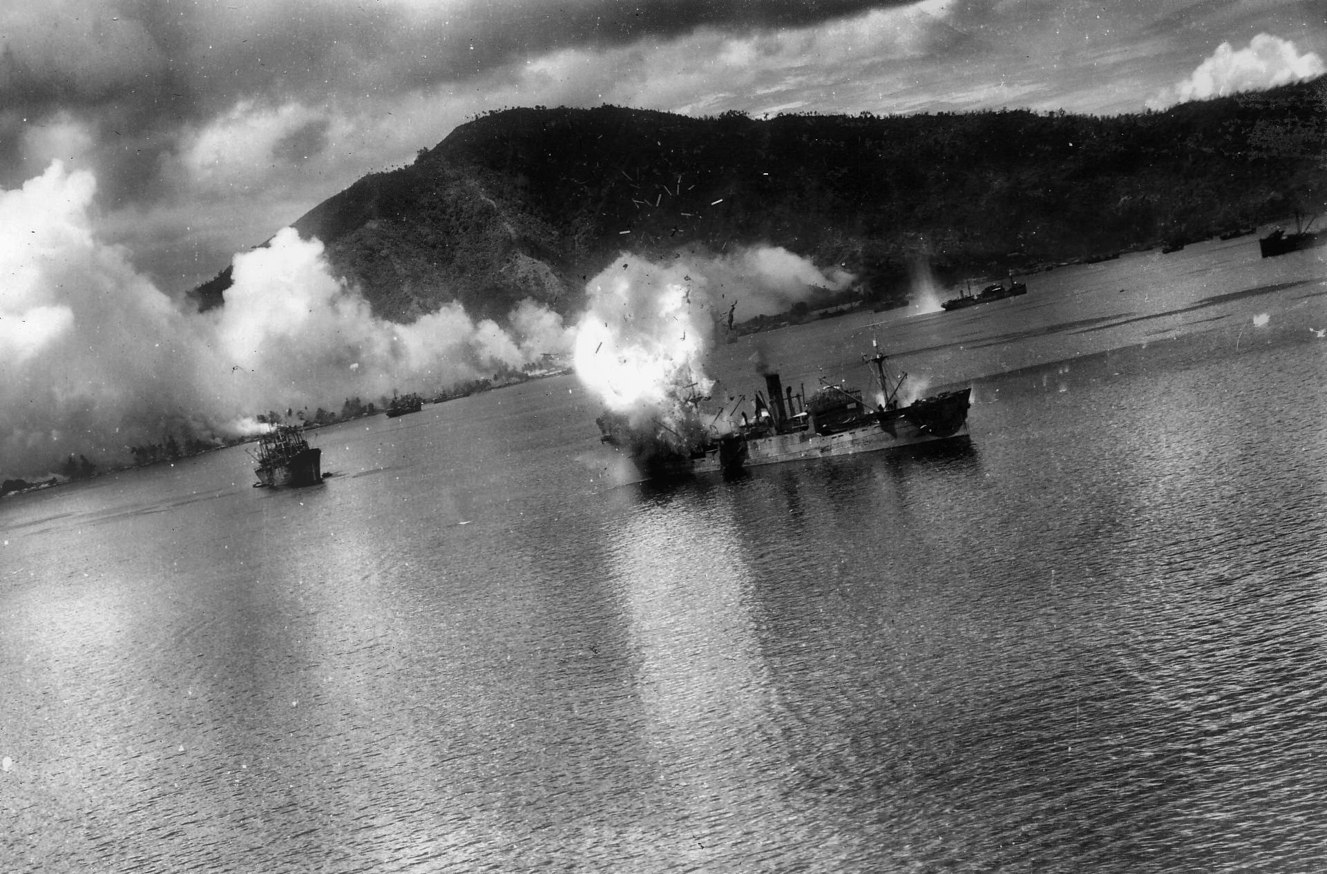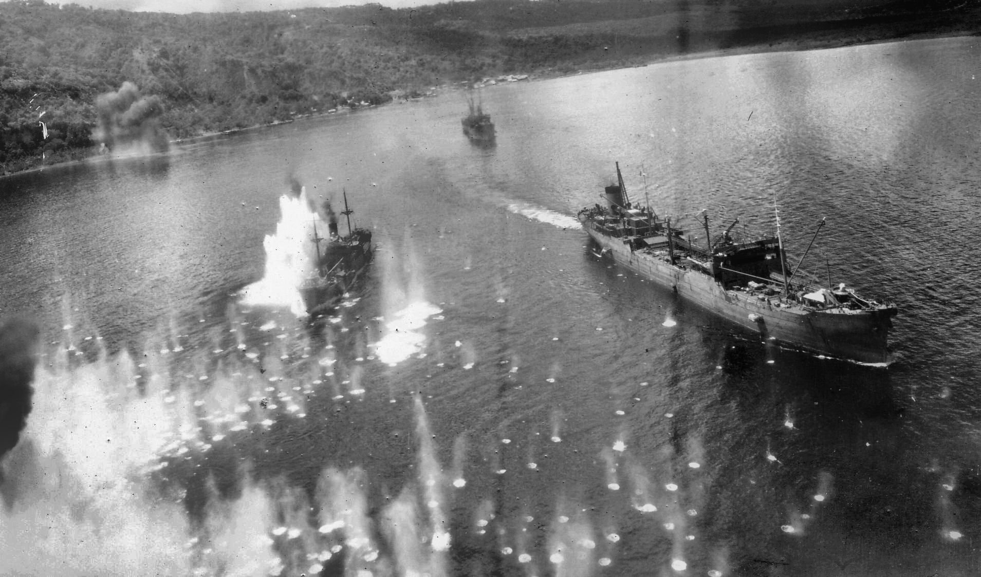 Několik záběrů pořízených posádkami amerických armádních bombardérů při náletu na japonské lodě v Rabaulu 2. listopadu 1943... dnes přesně před 80 lety :D