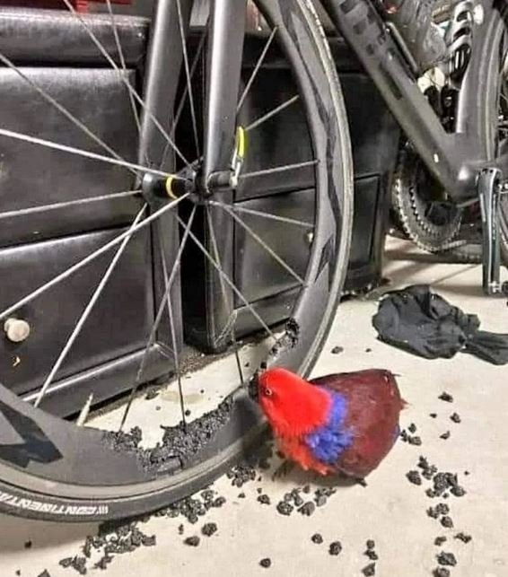 Samička papouška Eclectus roratus (samečci jsou zelení) při práci. Normálně se živí především ovocem a dožívají se až 75 let. V tomto případě to bude asi o dost méně