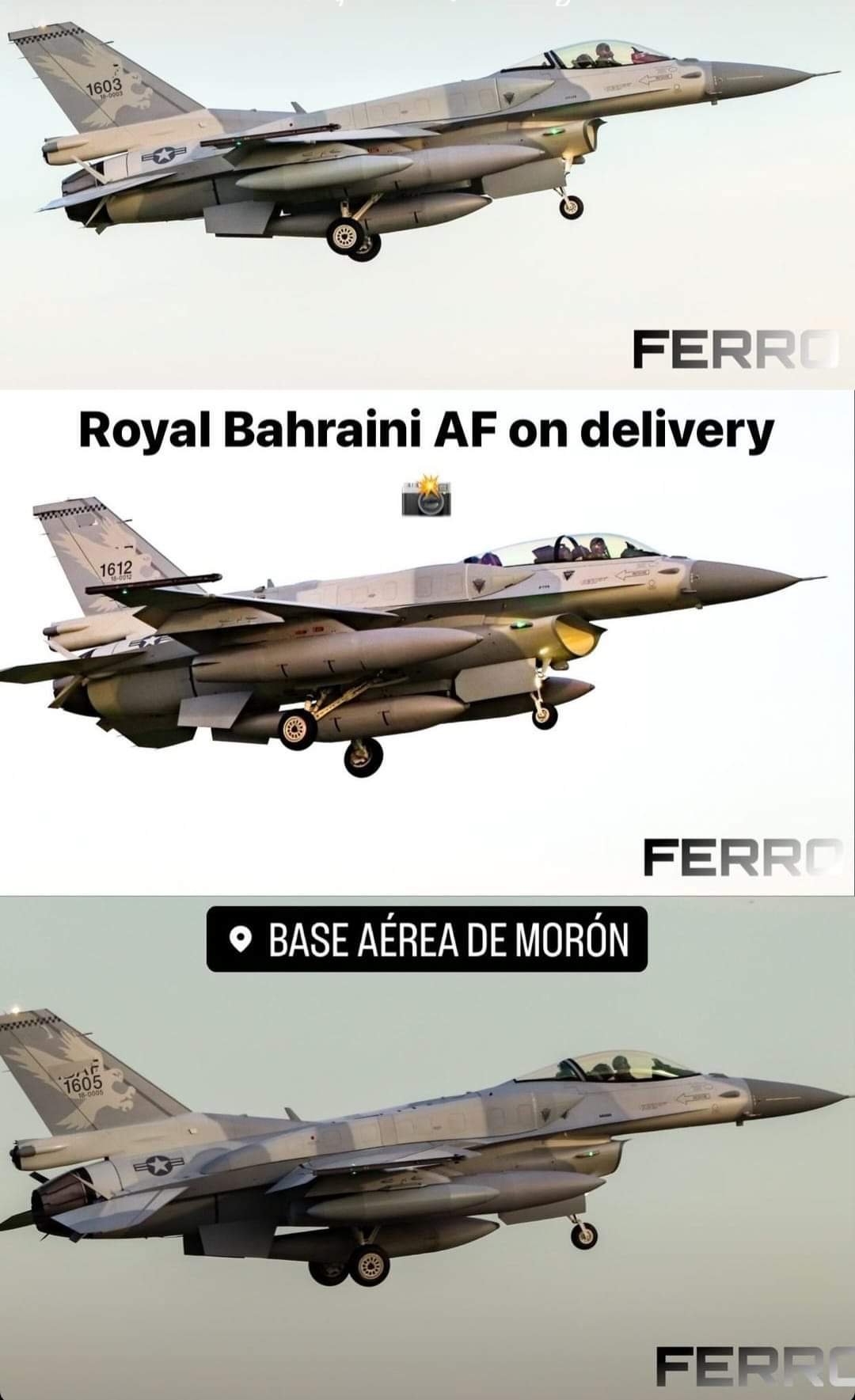 Včera skoro ráno amerického času (04.11 a.m.) odleteli prvé tri F-16 Block 70 (2xC a 1xD) z Greenville do Bahrajnu. Spoločnosť a dopĺňanie paliva im robili dve KC-135, ktoré spolu s nimi pristáli na základni de Morón pri Seville. Dnes by mali pokračovať ďalej, priamo do Bahrajnu.