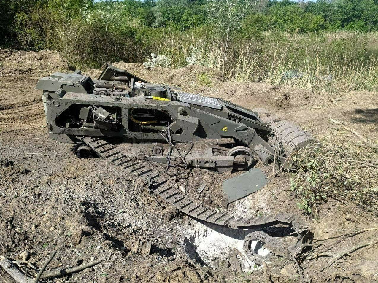 Ruské bezosádkové odminovací vozidlo Uran-6 bylo zničeno minou. Jo, slyšíte dobře, vyhozeno do povětří minou...