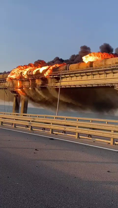 Auto mostovky zlomene, vlak s palivom v plamenoch, tam rovnako pride k destrukcii podkladu pri tych teplotach