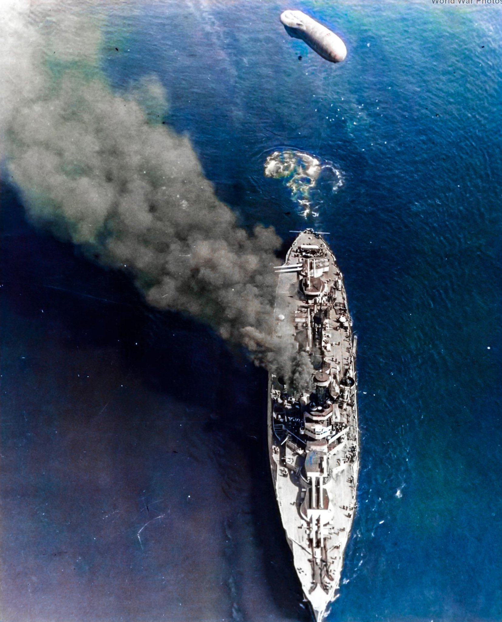 Kolorocvaný snímek americké bitevní lodě Arkansas z roku 1921