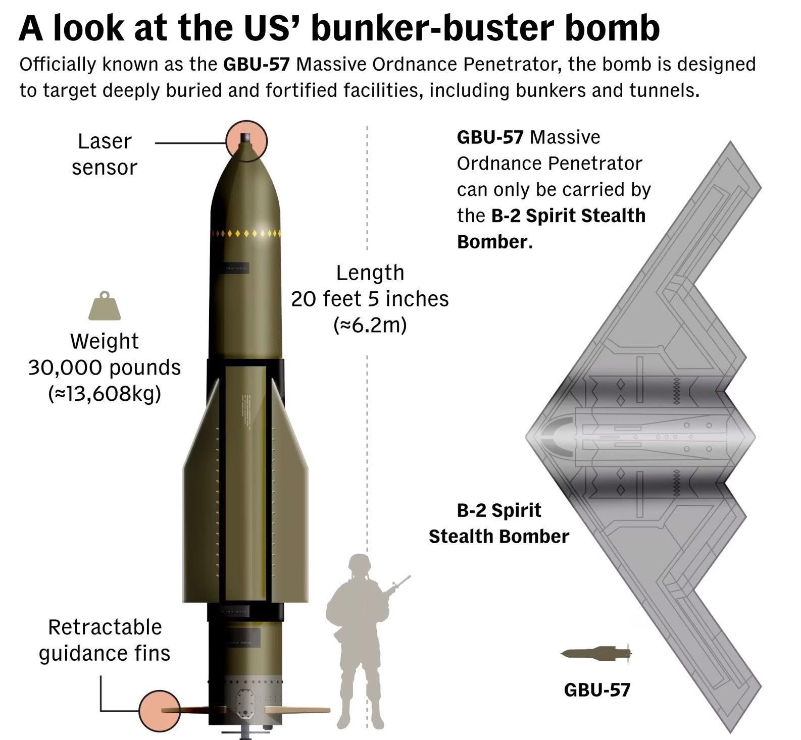 GBU-57A/B „Massive Ordnance Penetrator“ je 30 000 liber wolframu, zpožděné rozněcovače a geologická sekvence exploze stvořená k rozbíjení hor.
