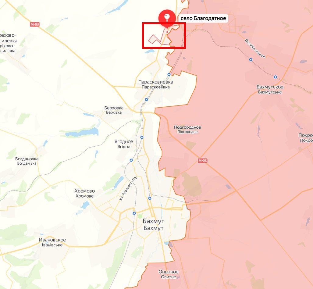 Vesnice Blagodatnoje byla obsazena PMC Wagner čímž bylo přerušeno spojení Bachmut- Seversk
