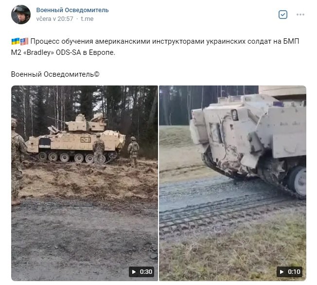 Postup amerických instruktorů při výcviku ukrajinských vojáků na vozidlech M2 "Bradley" ODS-SA BMP v Evropě.