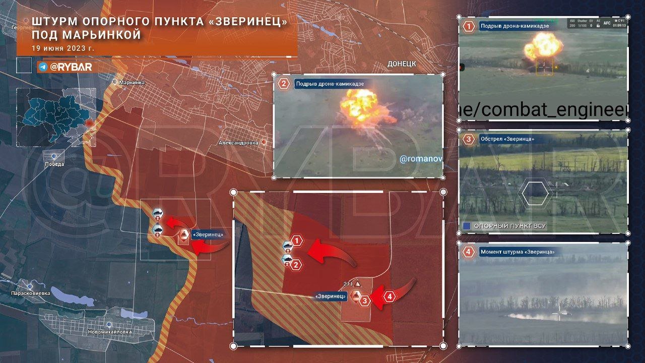 Ruské ozbrojené síly včera získaly kontrolu (https://t.me/rybar/48694) nad důležitým taktickým postavením s krycím názvem "Zvěřinec", které se nachází mezi Marinkou a Novomichajlovkou. Dnes se na internetu objevily záběry (https://t.me/voenacher/46991?single), které během útoku natočili naši vojáci.