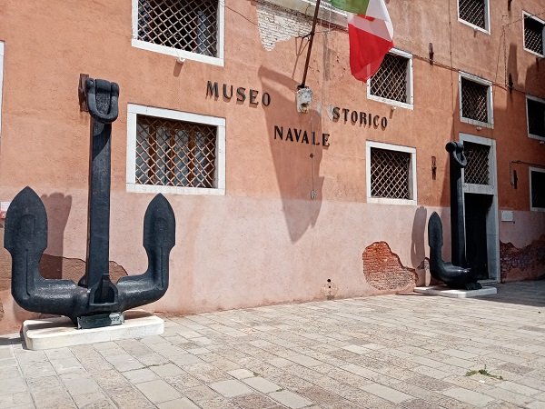 sesterské kotvy sesterských lodí před Námořním historickým muzeem v Benátkách