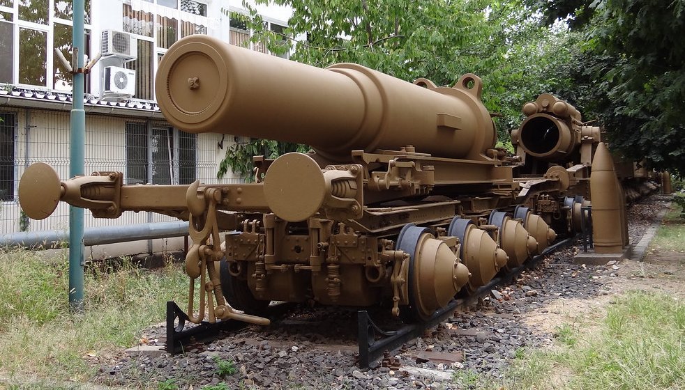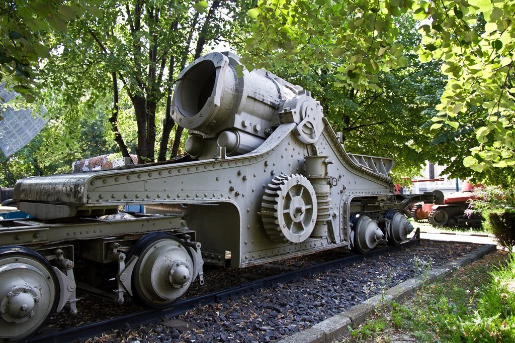 Lafetový vůz, kolébka 42cm houfnice z Plzně. Muzeum v Bukurešti, Rumunsko.
