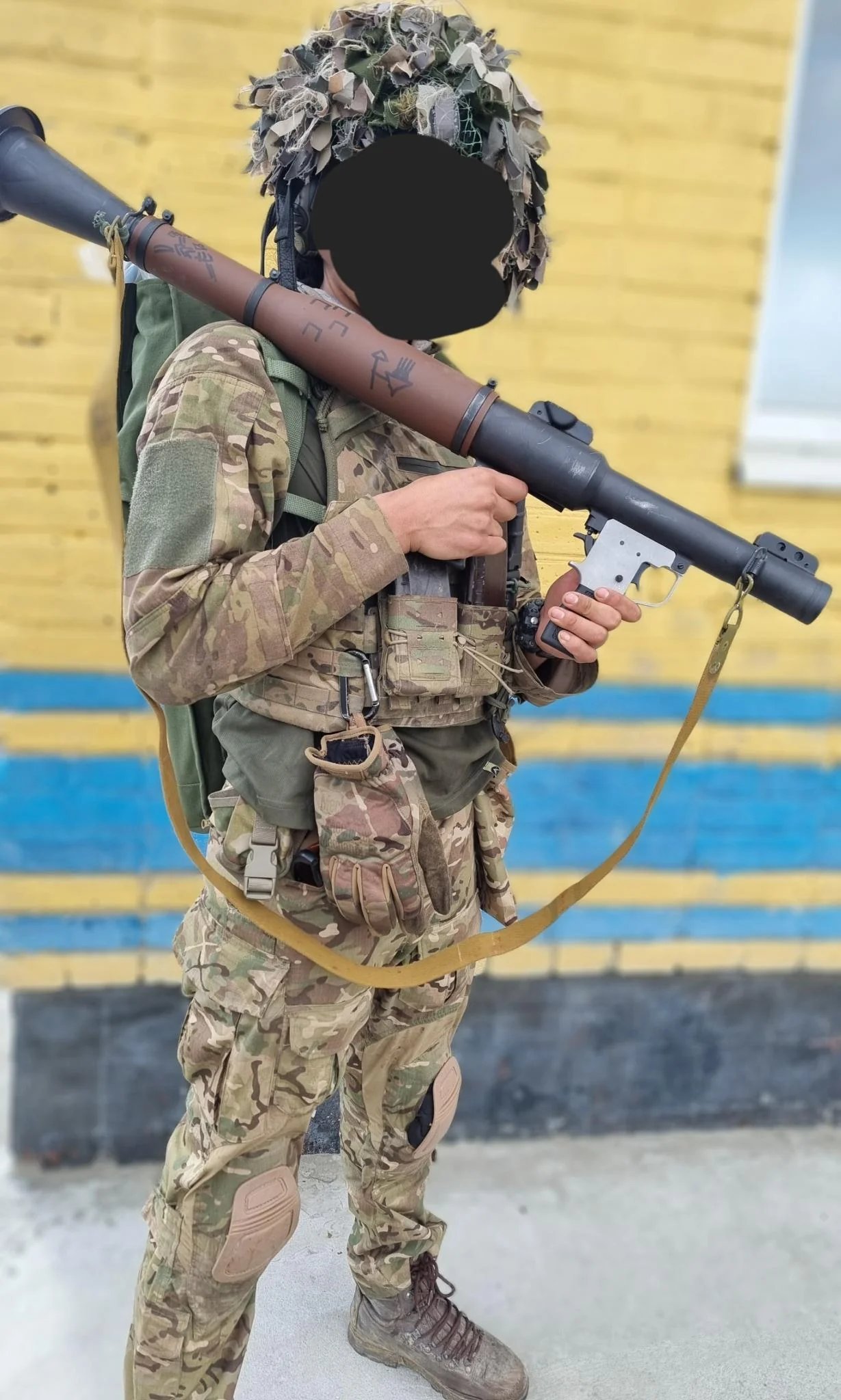 Nápis v domorodém jazyce na jeho RPG-7 znamená "Jeho šípy vždy zasáhnou cíl".