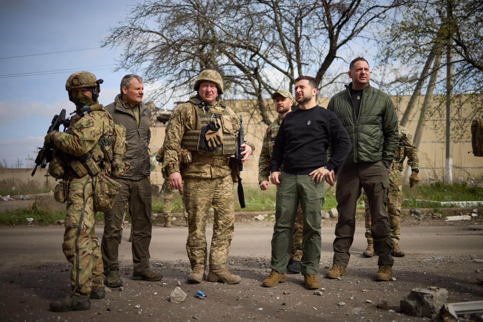 Prezident Volodymyr Zelenskyj navštívil vojáky bojující v Avdijivce v Doněcké oblasti. Hovořil s vojáky námořní pěchoty, obojživelných útočných, mechanizovaných a dělostřeleckých jednotek a poděkoval jim za jejich službu. "Mám tu čest zde dnes být a poděkovat vám za vaši službu, za obranu naší země, našich rodin," řekl Zelenskyj. Vojákům také popřál k Velikonocům a držel s nimi minutu ticha na památku padlých bojovníků. Následně některým z nich předal státní vyznamenání. Podle geolokace byl prezident zhruba 3 kilometry od frontové linie (!)