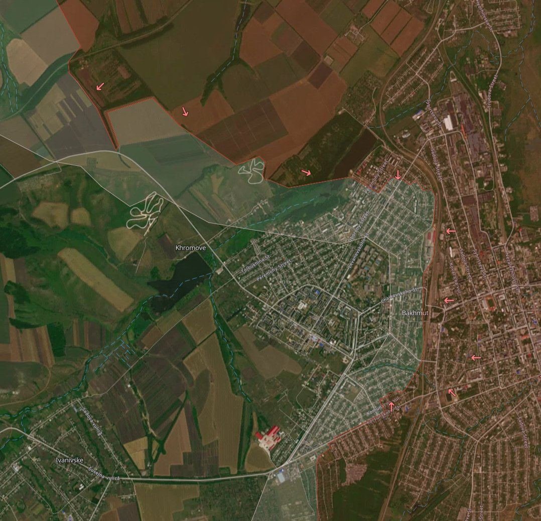 Поступают сообщения, что штурмовые отряды «Вагнера» смогли пробиться к дороге О-0506 Часов Яр - Хромово.