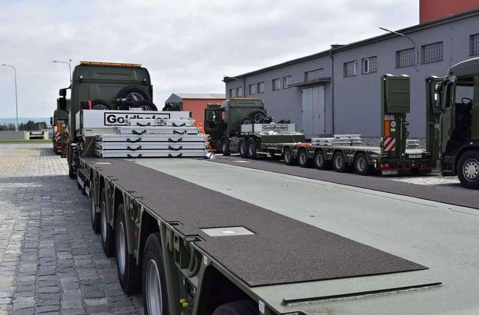 AČR dostala nové tahače Scania R660 6x4 a přívěsy Goldhofer MPA5 s nosností vyšší 50 tun, co se dají teleskopicky roztahovat. Pět vozidel dostává 14. logistický pluk a prapor podpory nasaditelných sil. Budou tahat materiál a zejména pásové prostředky. Za fotky díky Daníkovi.