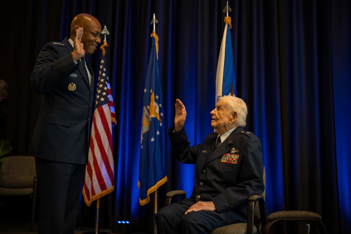 USAF má stoletého generála. Clarence Emil "Bud" Anderson, stíhací eso z 2. světové války s 16 sestřely na P-51 Mustang, který sloužil ještě ve Vietnamu jako velitel 355th TFW na F-105 Thunderchief, byl 2. prosince 2022 povýšen na brigádního generála.