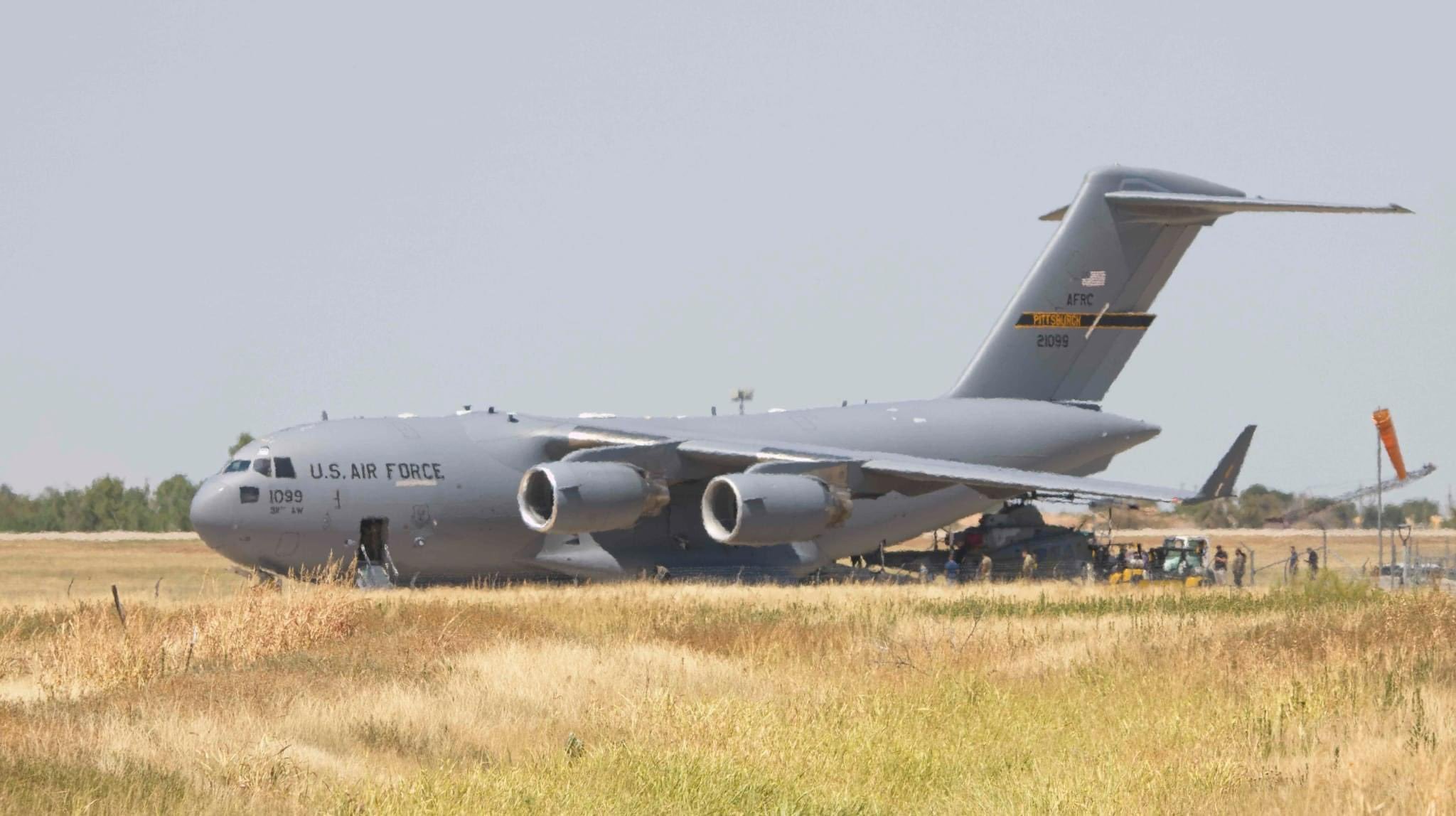Další C-17A nad ránem přilétla na základnu Náměšť s nákladem z USA. :-?