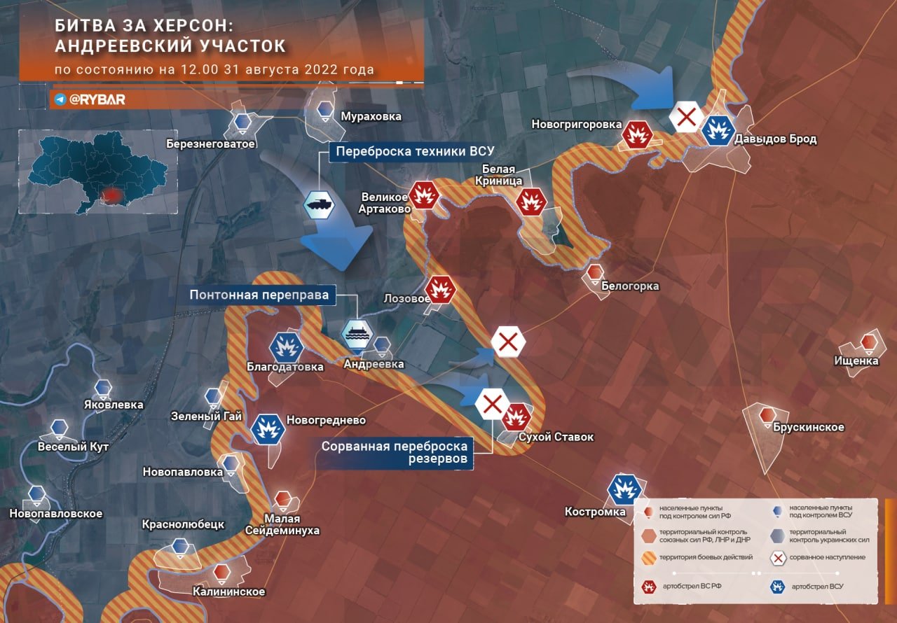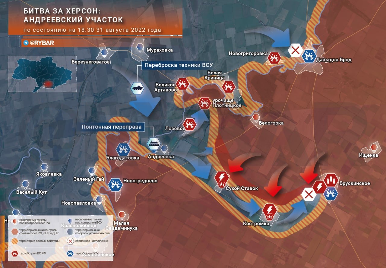 Ruským ozbrojeným silám se podařilo částečně zničit obrněná vozidla AFU přesunutá do Suchého stavoku. Nepřítel byl nucen ustoupit do zalesněné oblasti, kde se přeskupil. Silná kontrola AFU zůstává v Andreevce a Lozovoye (ano, vesnice je pod kontrolou AFU).