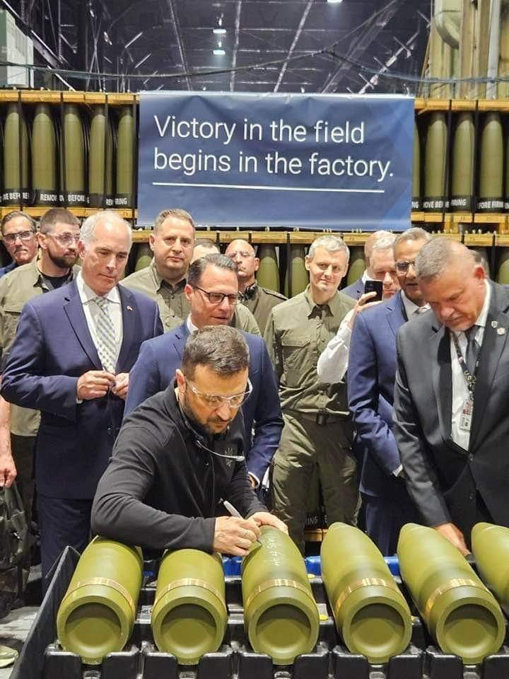 Foto: Zelenský navštívil výrobu 155mm munice v Pensylvánii.