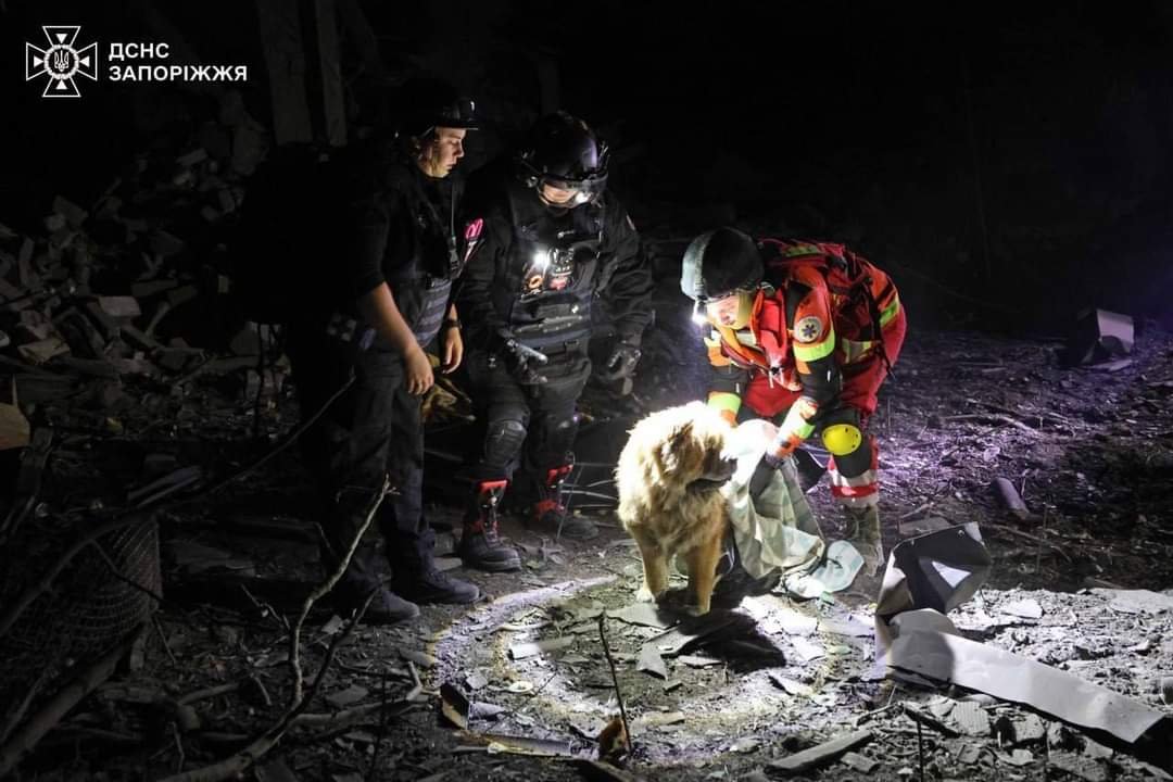 Foto: Zachráněný pes z trosek domu v Charkově.