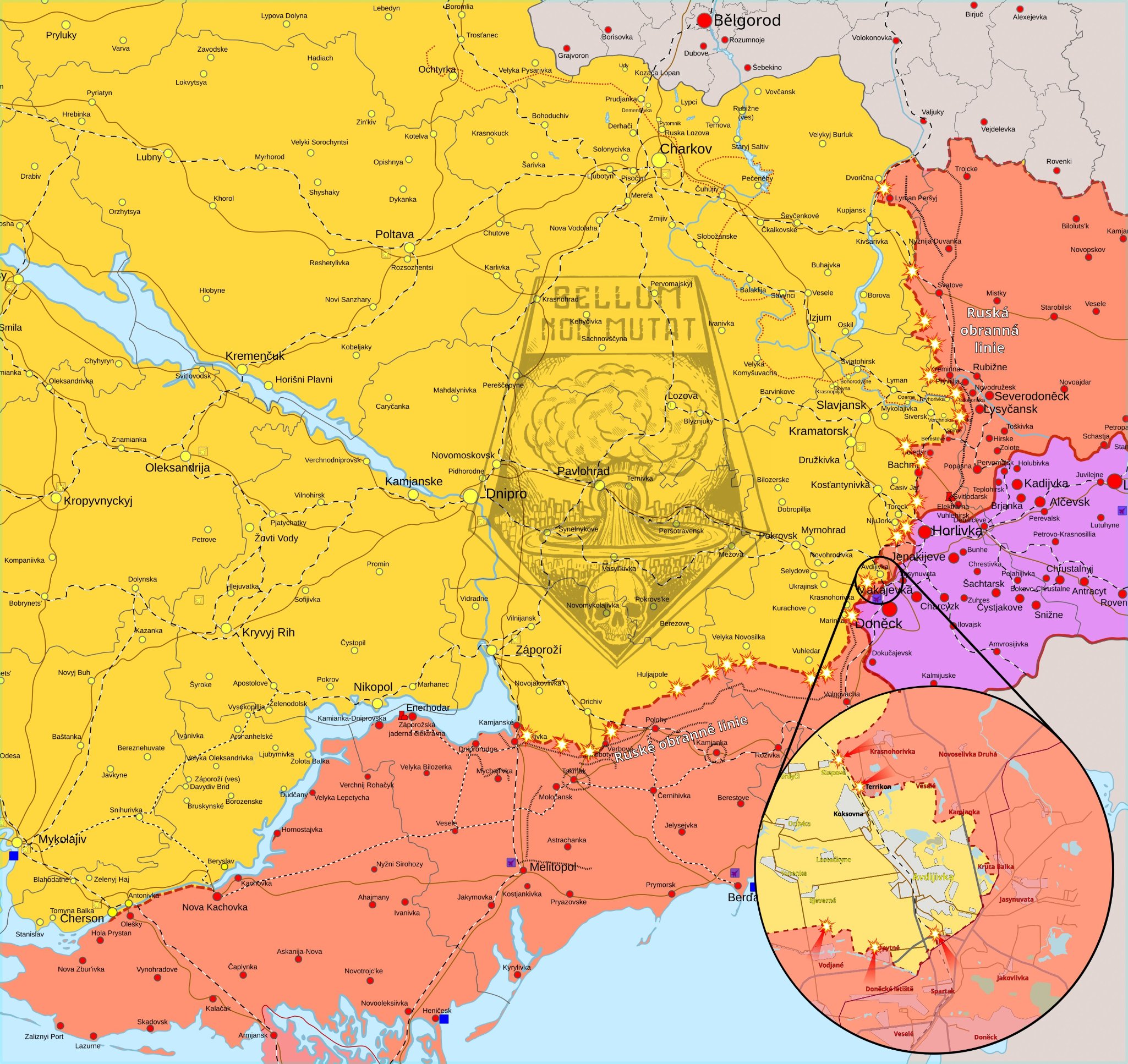Záporožská fronta: Ukrajinské ozbrojené složky tlačí ze severu a severovýchodu na Novoprokopivku a na její severovýchodní straně jsou podle některých záběrů již na jejím okraji. Ukrajinci útočí západně od Robotyné a postupují směrem ke Kopani.
