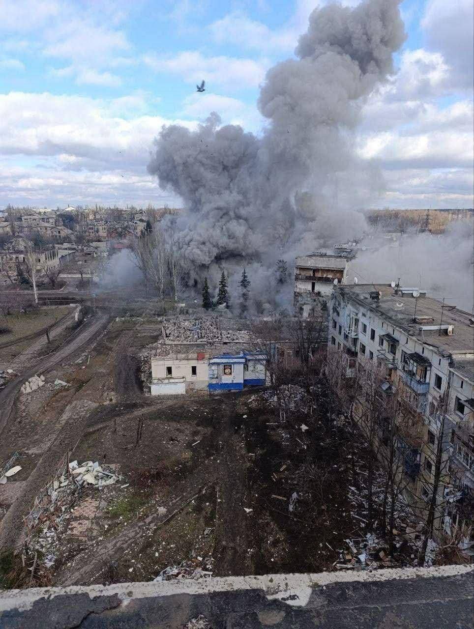 Foto: Zasažená ruská základna v Selidovém.