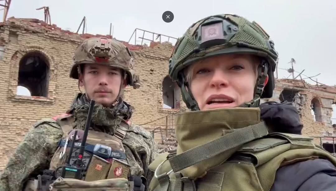 Foto: Olga Petersen, členka německá AfD korzuje za doprovodu ruských vojáků na okupovaném území Ukrajiny a tvoří propagandu.