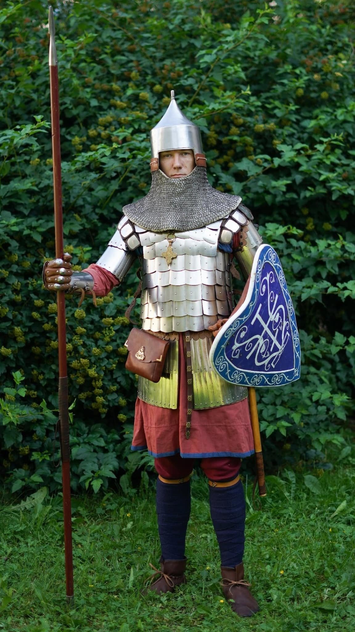 Rekonstrukce ruského válečníka ze 14. století z Pskova, helma vypadá opravdu litevsky.
