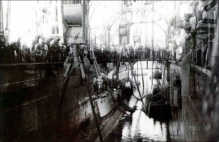 záchranná loď ponorekVolchov s vyzvednutou ruskou ponorkou AG 15