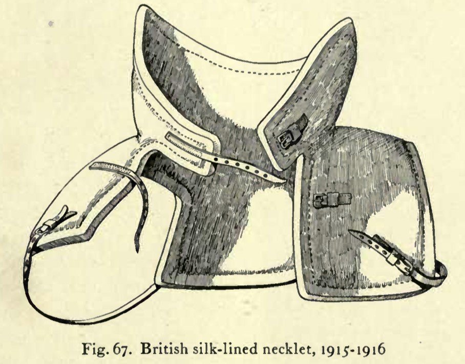 V době války se vývojové práce v Británii ubíraly dvěma odlišnými směry, zvanými yielding (ohebný) a rigid (neohebný). "Yielding Armor" byl typ, který by se dal přirovnat ke středověkým prošívanicím a polstrovaným vestám. Řadí se sem i moderní konstrukce vycházející z kroužkových košil. Cílem tedy bylo vytvořit moderní obdobu těchto historických konstrukcí, které by dokázaly odolat moderním zbraním, přičemž by si měly zachovat maximální lehkost, ohebnost a co nejméně komplikovat pohyb svému nositeli. Hlavním materiálem, který byl u těchto ohebných pancéřů používán, bylo hedvábí nebo jiný vláknitý materiál, tkaný nebo vycpávaný. První konstrukcí byl chránič krku, který byl zkonstruován v Londýně pod záštitou Munitions Inventions Board. Tento límec byl velice vysoký a tak velice znesnadňoval svému nositeli pohyb. Dosahoval od ramen až k okraji přilby. Tento neprůstřelný límec byl také velice široký, až 5 cm a dosahoval hmotnosti 1500 gramů. Nákrčník byl vyhotoven z 24 vrstev japonského hedvábí, každá o hmotnosti 31 gramů, které byly následně sešité hedvábnou nití. Krycí vrstva pak byla tvořena tenkým plátnem v barvě khaki a okraje byly zesíleny tenkým železným lemem. Nákrčník pak byl doplněn čtyřmi koženými řemínky, na zadní straně (dva na krku a dva v podpaží). Tento nákrčník dosahoval stejné balistické ochrany jako britská střepinová přilba. Test provedený Ordnance Department prokázal, že tento materiál dokáže zastavit projektil vypálený z pistole o rychlosti 180 m/s. Britská armáda se rozhodla zavést tyto neprůstřelné límce v počtu 400 kusů na divizi (1915-1916). Brzy se ale ukázalo že tyto límce nejsou tak užitečné jak se prve soudilo. Příčinou byly specifické podmínky zákopové války a také vysoká cena. Navíc jak již bylo zmíněno, bylo velice složité vůbec sehnat nějaké hedvábí, ze kterého by mohly být tyto límce vyrobeny. Bohužel není známo kolik těchto neprůstřelných límců bylo v průběhu války vyrobeno. Nejspíše jen malé množství.