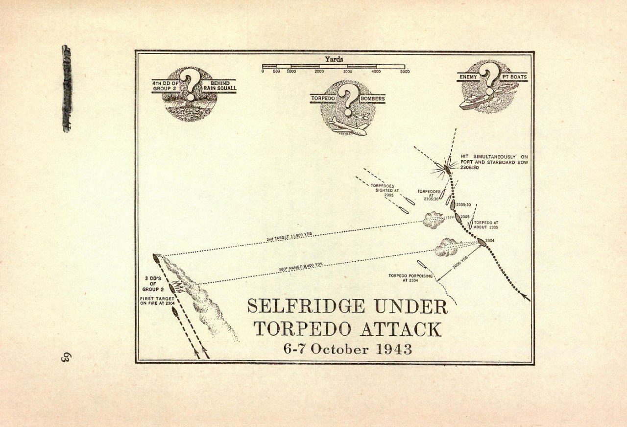 Schéma torpédového útoku na Selfridge